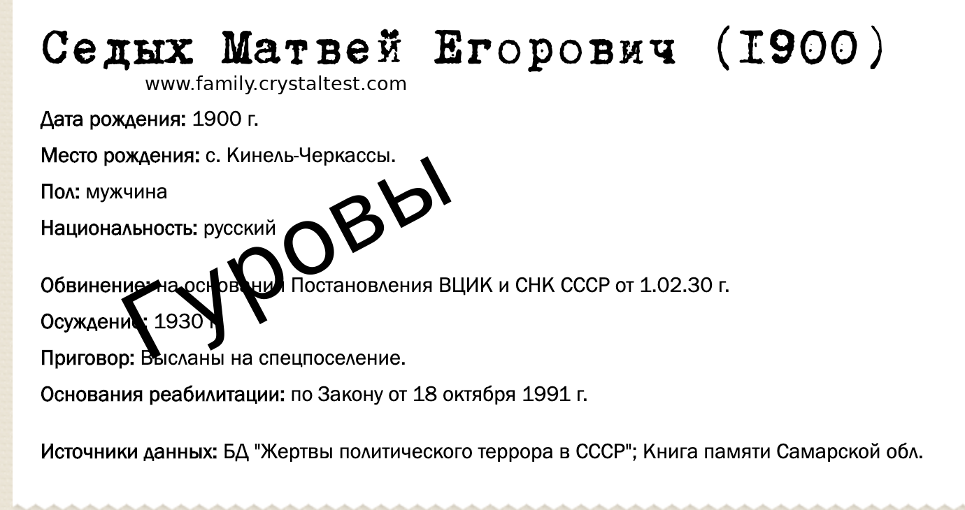 Егор Прокофьевич Седых Рождение: 1872 — село Кинель-Черкассы Смерть: село Кинель-Черкассы |